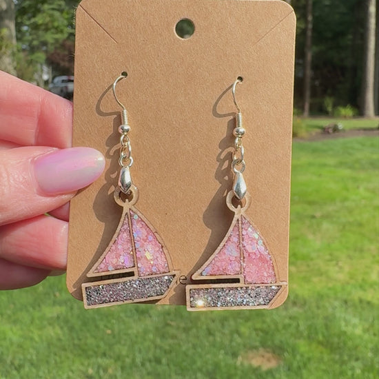 These delicate dangle earrings feature silver hardware paired with charming pink and gray sailboat accents, perfect for adding a subtle, girlie touch to any outfit. Expertly crafted, they offer lightweight comfort and a refined finish, making them an elegant accessory for both casual and dressy occasions.